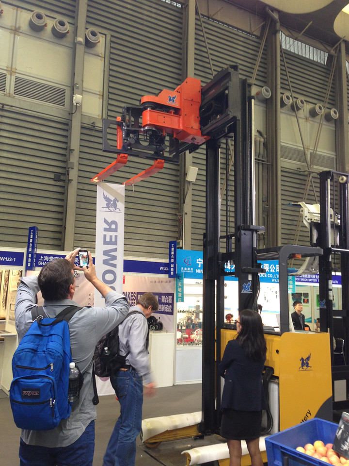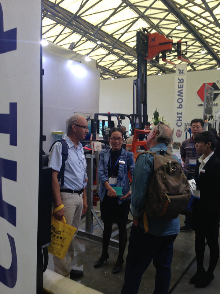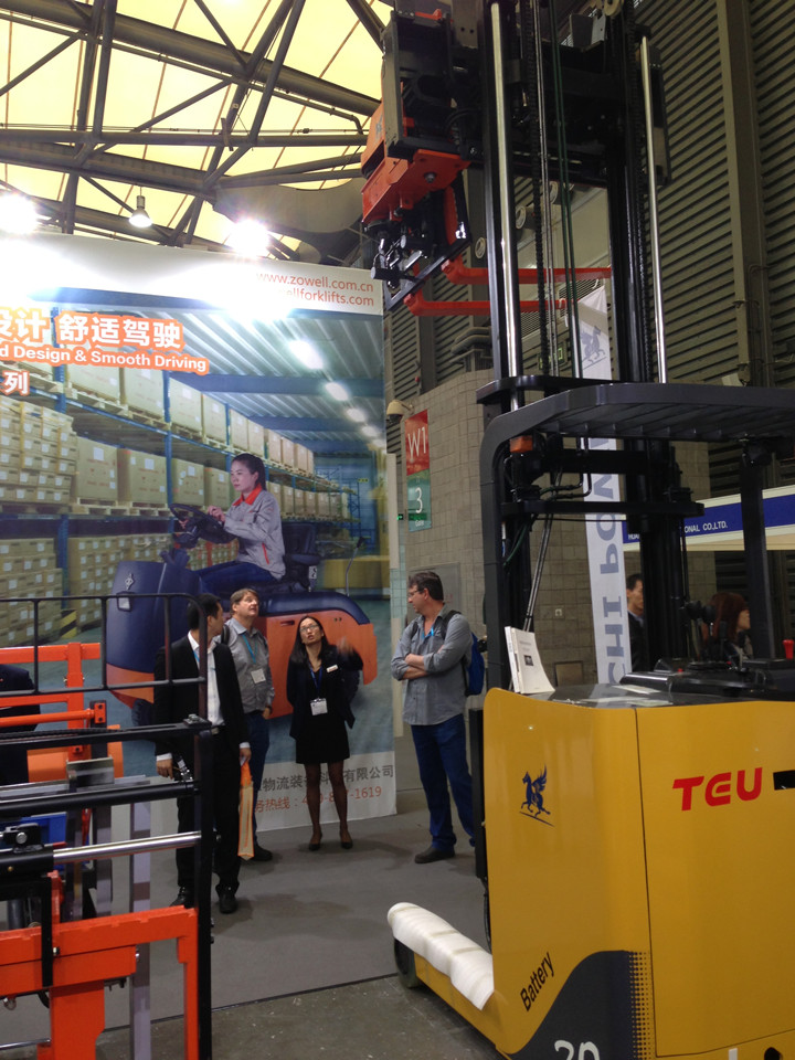 2015年10月27日,2015年亞洲國際物流技術(shù)與運輸系統(tǒng)展覽會(2015 CeMAT ASIA)在上海新國際博覽中心如期舉行。作為參展商的一員,我公司精心準(zhǔn)備了多款獨具特色的叉車屬具,有傾翻功能的翻箱器、無線智能稱重貨叉、客戶定制大噸位紙卷夾、方便隨車搬運的物流搬運小車、適用于窄通道堆垛貨物的三向堆垛叉車等,參觀的國內(nèi)外客戶們尤其對我公司的窄巷道的三向堆垛叉車非常感興趣,該叉車是基于平衡重式內(nèi)燃或電動叉車、前移式叉車而改進設(shè)計制造,對地坪沒有特殊要求,為立體存儲和空間高效利用提供了一個經(jīng)濟可行、快速實施的解決方案。
