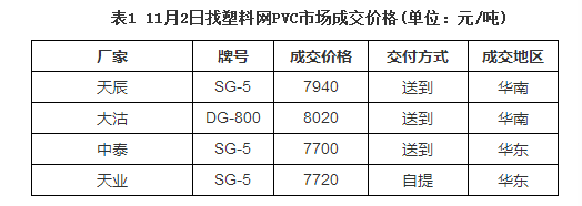 據(jù)找塑料網(wǎng)成交數(shù)據(jù)顯示(見表1)今日上午國內(nèi)PVC市場(chǎng)成交價(jià)格繼續(xù)上調(diào),場(chǎng)內(nèi)貨源緊俏依舊是市場(chǎng)拉漲的主要原因。西北貨源運(yùn)輸困難,車皮緊張,汽運(yùn)費(fèi)用再度拉漲60-70元/噸,有力支撐價(jià)格高位。期貨市場(chǎng)跳水,但在缺貨的局面下,已經(jīng)難以控制現(xiàn)貨市場(chǎng)了。今日華東電石法SG-5主流價(jià)格維持在7600-7700元/噸(自提);華南市場(chǎng)電石法SG-5主流成交價(jià)7800-7850元/噸(自提)。找塑料國內(nèi)PVC實(shí)際成交指數(shù)為968點(diǎn),較上一交易日上調(diào)5點(diǎn)。