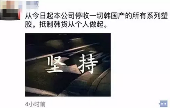 就在前幾天,韓國舉行了大規(guī)模游行示威,高喊美韓同心,誓與中國戰(zhàn)斗到最后。我們作為塑料行業(yè)的人,雖然不能拿著槍到前線去保衛(wèi)我們的祖國,但我們也很愛國,樂天總裁說,就算樂天倒閉,也要把土地轉(zhuǎn)讓給政府部署薩德系統(tǒng),這是他的愛國情懷,但是我們作為中國人,我們也愛自己的國家, 作為塑料高分子材料方面的從業(yè)人員,抵制銷售(韓國)樂天化學的一切塑膠原料。