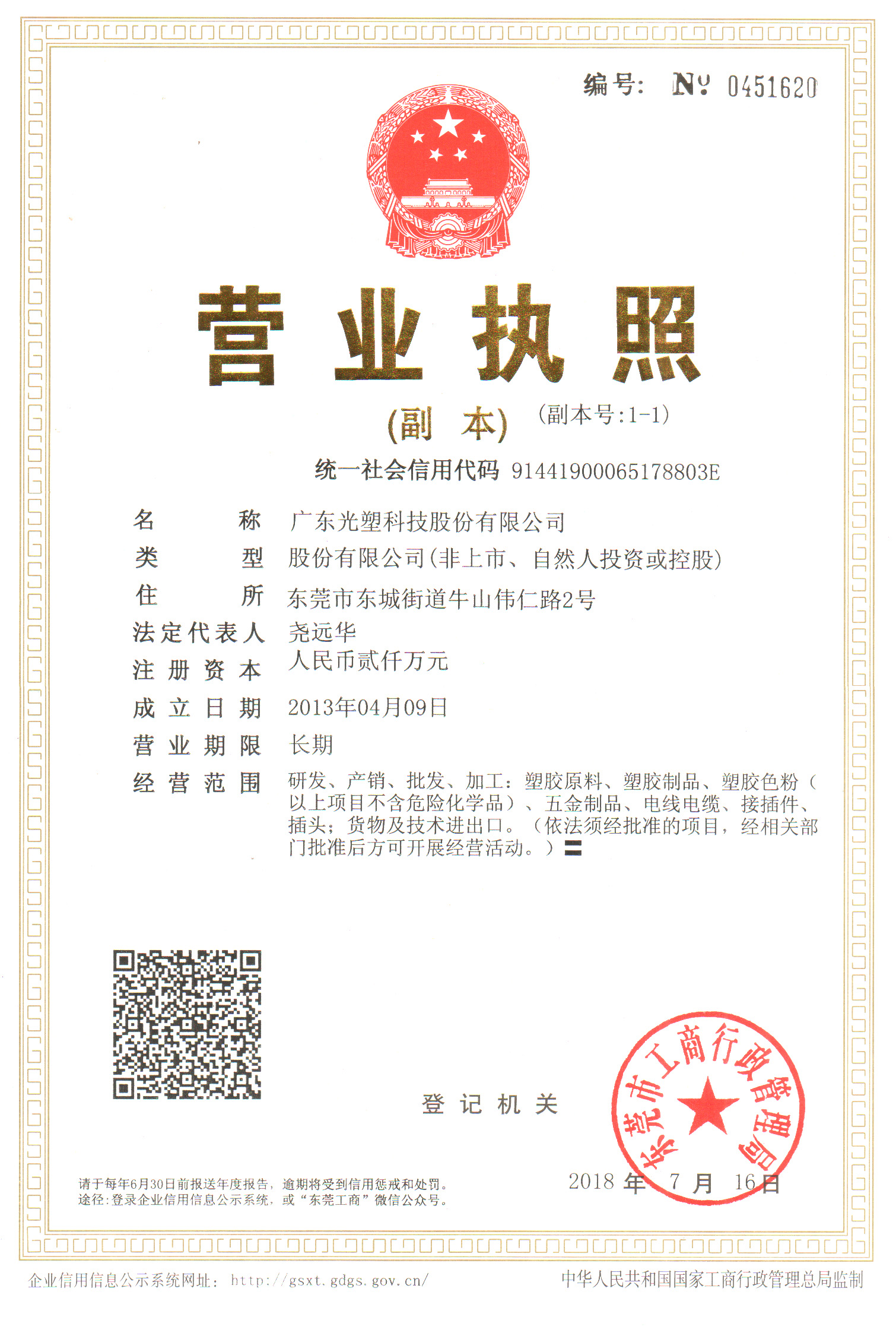 原廣東光塑塑膠有限公司從即日起更名為【廣東光塑科技股份有限公司】原公司的商務往來,商標技術(shù)專利及其他相關(guān)業(yè)務事宜由新公司承接。光塑科技以更好、更高、更專業(yè)、更實惠的服務廣大客戶和供應商,為股東創(chuàng)造更豐厚的價值和財富。
