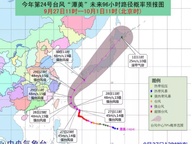 另據(jù)@廣州天氣,“潭美”28-29日最接近臺灣,隨后掉頭往東北方向移動,國慶期間前往臺灣的朋友不用擔(dān)心。