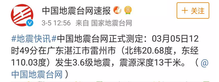剛剛中午,各位或許在吃飯或許在午睡休息的時候廣東湛江發(fā)生了地震